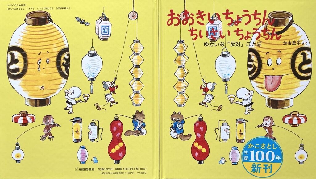 初版は1976年「かがくのとも」として出版されたので、表紙や裏表のちょうちんに「と」や「も」が書かれていますし、本文の中にも同様な絵があります。